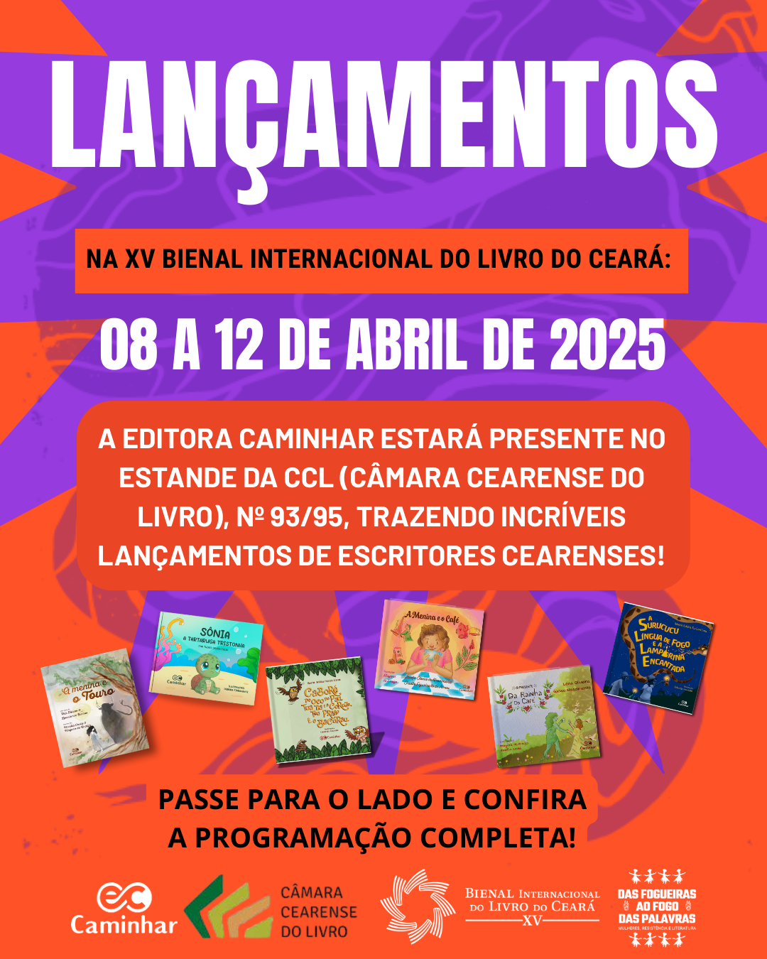 PROGRAMAÇÃO DOS LANÇAMENTOS DA EDITORA CAMINHAR NA XV BIENAL INTERNACIONAL DO LIVRO DO CEARÁ!
